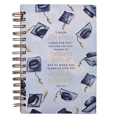 The I know the Plans Large Wirebound Journal for Graduates is an excellent item to celebrate the achievements of a new graduate! Recognize their hard work and determination as they prepare to move to a new stage in their life and encourage them to trust the Lord with their future. Even when it seems uncertain to them, remind them that it is not unknown or uncertain to God. He has promised to give them hope and a future.