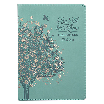 Use the beautiful Be Still & Know Teal Blue Faux Leather Classic Journal to note your thoughts and prayers in your downtime. Cultivate the habit of self-reflection and bringing your heart's desires before the LORD. The classic journal has a teal faux leather flexcover with a large, heat debossed tree full of gold foiled blossoms that spans the front and back covers. A bird in flight draws your attention to the comforting heat debossed sentiment. The spiritual comfort continues with a series of unique Scripture verses printed at the bottom of each lined page. The ideal weight of the 366 pages minimizes bleed through from pen ink. To make gift-giving more convenient, a presentation page that allows you to write a short message is included in the journal's front. The pages are gilt-edged to give the journal an added touch of elegance. Share the Be Still & Know Teal Faux Leather Classic Journal with a daughter or friend and encourage her to spend time communicating with God through writing or give the Be Still & Know Teal Faux Leather Classic Journal as a birthday or Christmas gift to a mom, teacher or mentor. Heat debossed tree design with gold foil accents, Teal faux leather, Flexcover, Heat debossed, Ribbon marker, Thick paper minimizes bleed through, 336 lined pages, Scripture on each page, Size: 8.6 x 6.1 x 0.9 (218 x 155 x 23mm)