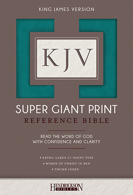 The brand-new King James Version Super Giant Print Reference Bible, with generous 17-point type, is a readable choice for those who need a larger font. Competitive pricing and many excellent features set this beautiful Bible apart, and make it a welcome edition to Hendrickson's KJV Bibles line.