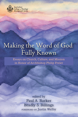 Making the Word of God Fully Known is a collection of essays on church, culture, and mission relevant for the Australian church in honor of the sixty-fifth birthday of Archbishop Philip Freier, archbishop of Melbourne. The essays cover aspects of mission strategy, ministry of women, ministry to Australian indigenous people, responding to past history of child sexual abuse, and issues of liturgy and ecclesiology. The target is Australian ministers and laypeople. The essays largely come from Melbourne, a richly diverse Anglican diocese and reflect the priorities and strategies of Archbishop Freier's thirteen years as archbishop.