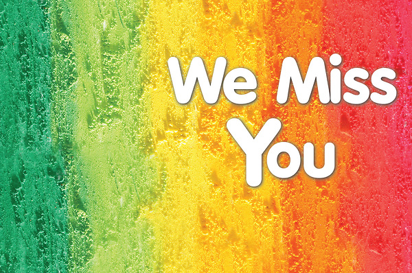 Help individuals feel they are apart of the group. This colorful postcard shows them there is a place for them as it declares "We Miss You" on the front of the postcard. On the reverse side, space is included for a message and an address, along with the Bible verse: