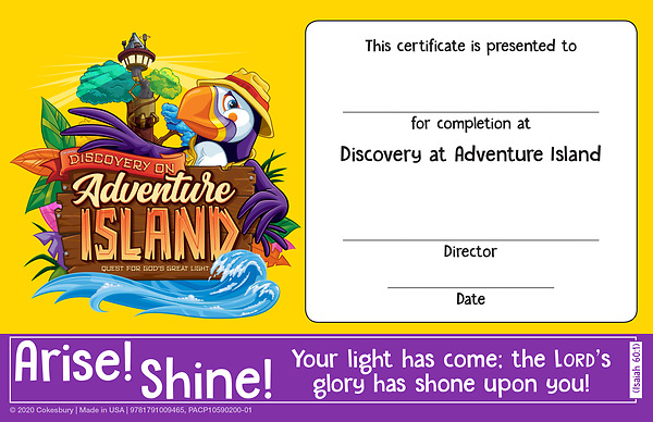 The Student Certificate is something kids will be able to take home and share with pride. It features the Discovery on Adventure Island logo, Theme Verse, and Beacon the puppet! (Pkg. of 48)