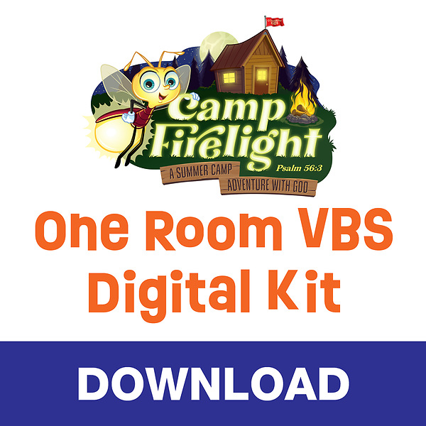 Camp Firelight One Room VBS Digital Kit is perfect for churches who want to offer VBS but don't have a large number of kids and/or volunteers. One Room VBS can be done with as few as two leaders and in just one room and is for ages 5-12. Each of the 5 Sessions include Activities, Bible Story, Science, Active Learning Option, Recreation, Crafts, and Music. One Room VBS curriculum is easy for churches to customize!