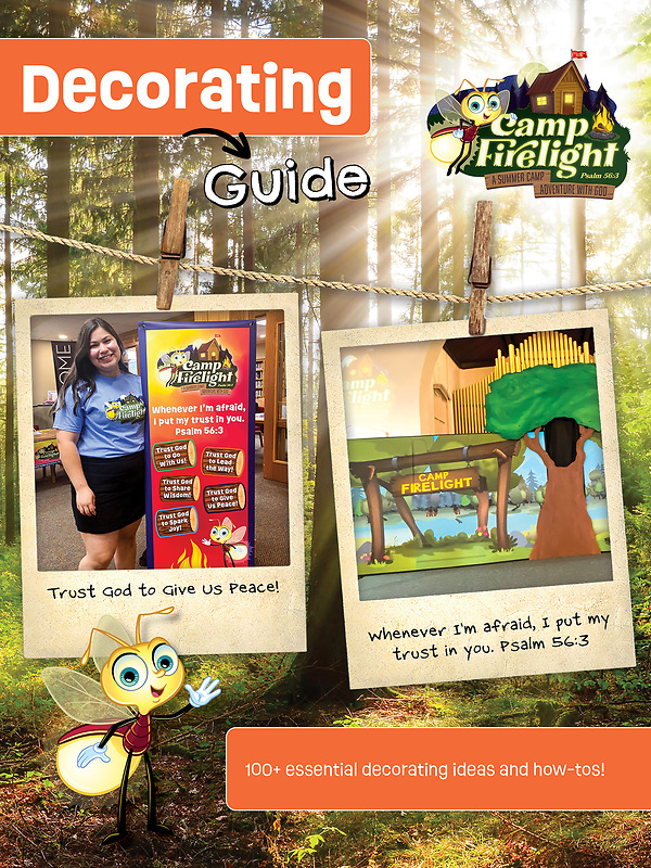 Camp Firelight VBS is not only fun, but Cokesbury has made it easy too! The guide is filled with ideas, tips, picture demonstrations, and quick, easy directions to jump-start your decorating. It will help you turn your space into the ultimate
