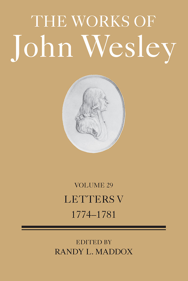 The correspondence presented in this fifth volume of Wesley’s letters includes a large number of his pastoral letters to various female and male lay persons in his societies. It also traces the fluctuations of Wesley’s stance on the British colonists in North America (and their Whig supporters in England) from the growing flames through the closing battles of their revolution. The volume includes over 180 items not found in previous editions of Wesley’s letters.