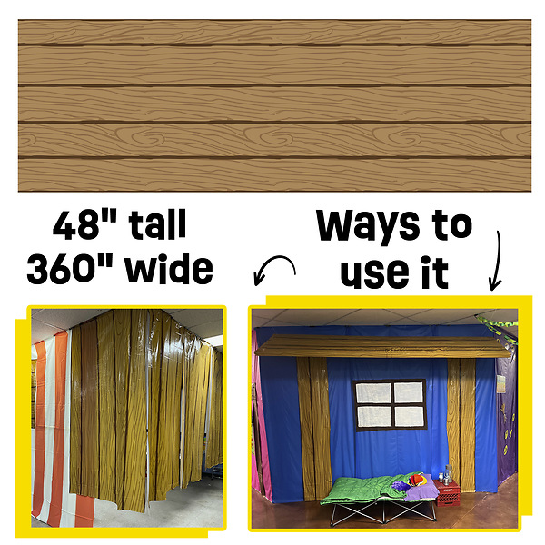 Camp Firelight VBS! Use for Lumen, “Lu,” Lightning Bug Puppet’s stage. or to transform your church hallways and stations into camp cabins! With dimensions measuring 4’ x 30’, you have plenty of room to add your unique touch!