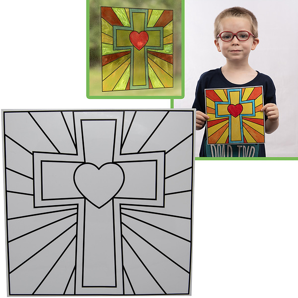 Your Travelers will have fun celebrating their faith with clear static Window Clings that they can color themselves! The design features the outlines of a cross with a heart and the center and rays of the sun emanating outward. Markers (not included) work best when coloring the clings, but you may use other coloring options. The package has enough materials for 12 kids. The size is 4.25" x 5.5".