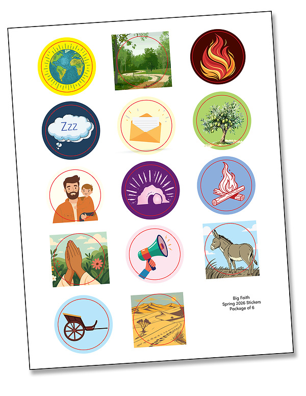 Cokesbury Kids Big Faith Spring 2026 All Ages Activity Stickers (Pkg of 6)