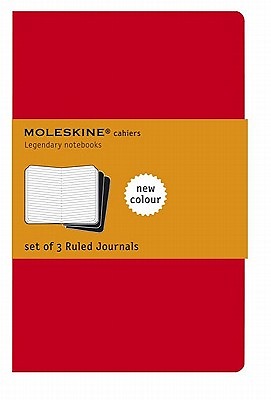 The Moleskine Cahiers are journals with a flexible heavy-duty writable cardboard cover in cranberry red with visible stitching on the spine. The last 16 sheets are detachable and there is a pocket for loose notes. Each set of 3 pieces includes the Moleskine history. With acid free paper and ruled pages. Set of 3.