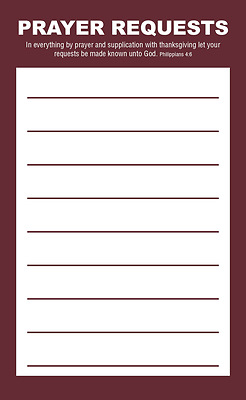 Prayer Request Card is designed with plenty of space for guests to share prayer request information and are printed on quality card stock.