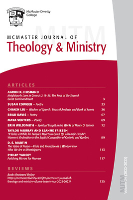 The McMaster Journal of Theology and Ministry is an electronic and print journal that seeks to provide pastors, educators, and interested lay persons with the fruits of theological, biblical, and professional studies in an accessible form. Published by McMaster Divinity College in Hamilton, Ontario, it continues the heritage of scholarly inquiry and theological dialogue represented by the College's previous print publications: the Theological Bulletin, Theodolite, and the McMaster Journal of Theology.