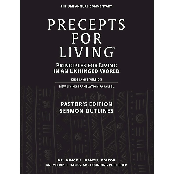 The Precepts for Living: The entire Bible in One Year - Pastor’s Edition Sermon Outlines provides a full year of teachings from God’s Word. Each weekly study brings biblical teachings to life with 52 thought-provoking sermon themes by leading African American pastors, Homiletical essays, and sermon outlines that reinforce lessons from Sunday School, Bible study, and small group sessions.