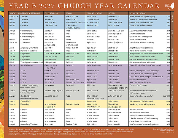 Church Year Calendar 2027, Year B