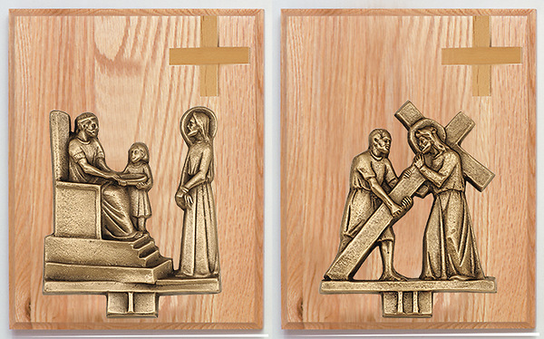 Stations of the Cross Oak Plaque Bronze Set 14