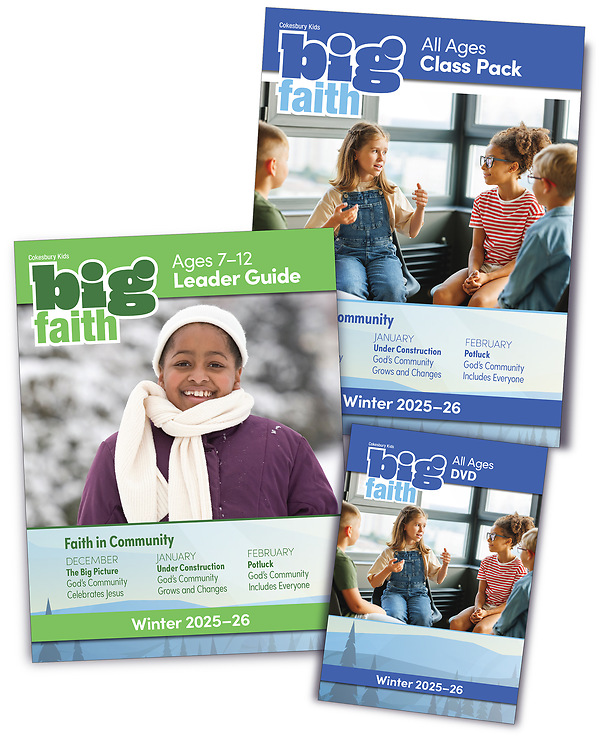 Cokesbury Kids Big Faith is a 13-week quarterly curriculum available in two age levels—ages 3-6 and 7-12—for convenience and flexibility. Get started with these resources: age-level Activity Sheets, Leader Kits, and Leader Guides, along with Activity Stickers, Class Pack, and DVD for use with both age levels.