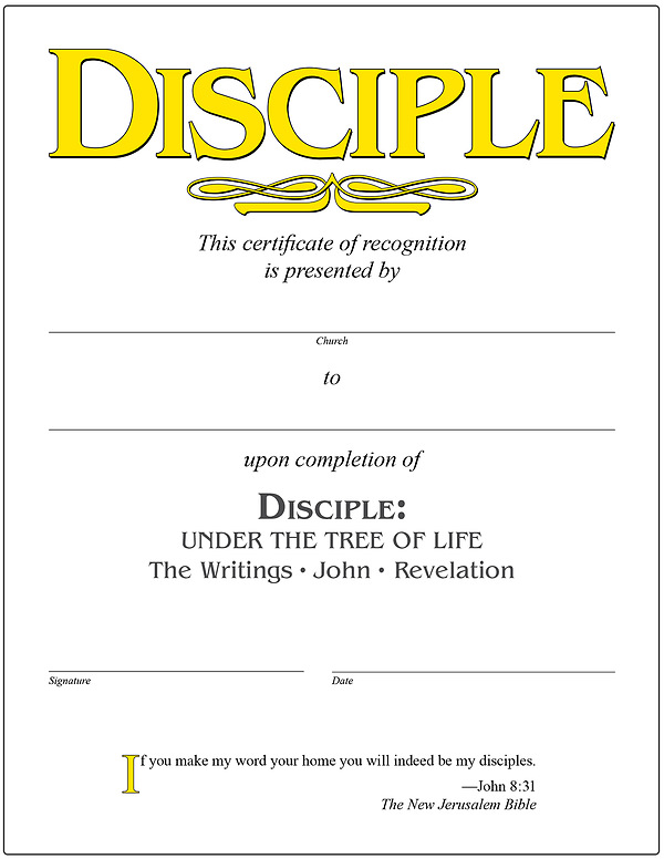 DISCIPLE: UNDER THE TREE OF LIFE, the final study in the four-phase DISCIPLE program and is prepared for those who have completed BECOMING DISCIPLES THROUGH BIBLE STUDY. The study concentrates on the Writings (Old Testament books not in the Torah or the Prophets), the Gospel of John, and Revelation.