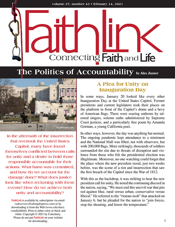 In the aftermath of the insurrection that overtook the United States Capitol, many have found themselves conflicted between calls for unity and a desire to hold those responsible accountable for their actions. What harm was committed, and how do we account for the damage done? What does justice look like when reckoning with these events? How do we achieve both unity and accountability?