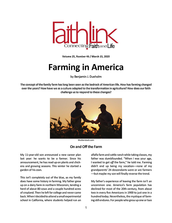 The concept of the family farm has long been seen as the bedrock of American life. How has farming changed over the years? How have we as a culture adapted to the transformation in agriculture? How does our faith challenge us to respond to these changes? Next Week: Coronavirus