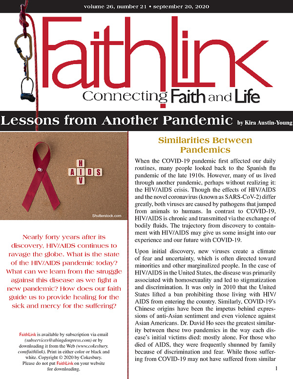 Nearly forty years after its discovery, HIV/AIDS continues to ravage the globe. What is the state of the HIV/AIDS pandemic today? What can we learn from the struggle against this disease as we fight a new pandemic? How does our faith guide us to provide healing for the sick and mercy for the suffering?