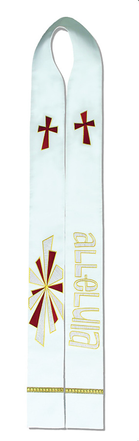 Alleluia White Cathedral Stole with Embroidery Color:RED
