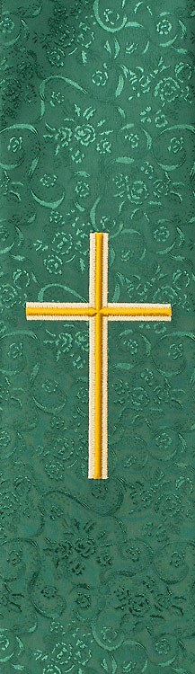 This Stole features an elegantly embroidered gold cross with metallic accents sitting against a rich Rose Damask material. The Neck is designed with a contoured shape for comfort. Size: 5” x 110”