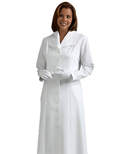 Qwick-Ship Viva Long Sleeve Dress with Embroidered Praying Hands Winged Collar Color:White - Height:5'4" - 5'6" - Chest:37" - 40" - Sleeve:30" - Hip:To 45"