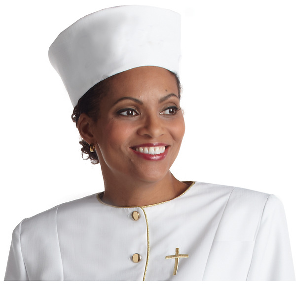 This white Linette hat provides an elegant finish to the Clergy Jacket ensemble found in the Related Products Section below. The crown height is 4".