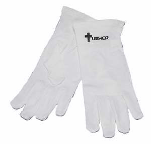 WHITE USHER GLOVES WITH BLACK EMBROIDERED CROSS