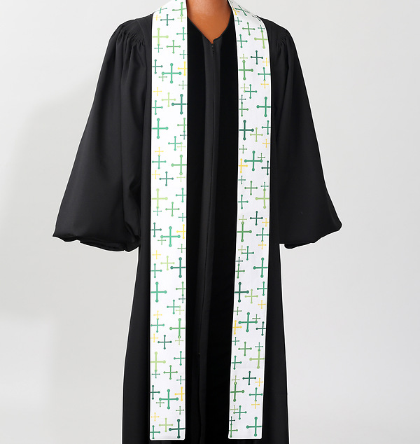 Cokesbury along with Jeff Wunrow Designs have teamed up to introduce a special edition of Jeff's Orange Label Stole line. All cotton stole featuring a print that uses a repeat of St. Michael's crosses to create a unique textile.