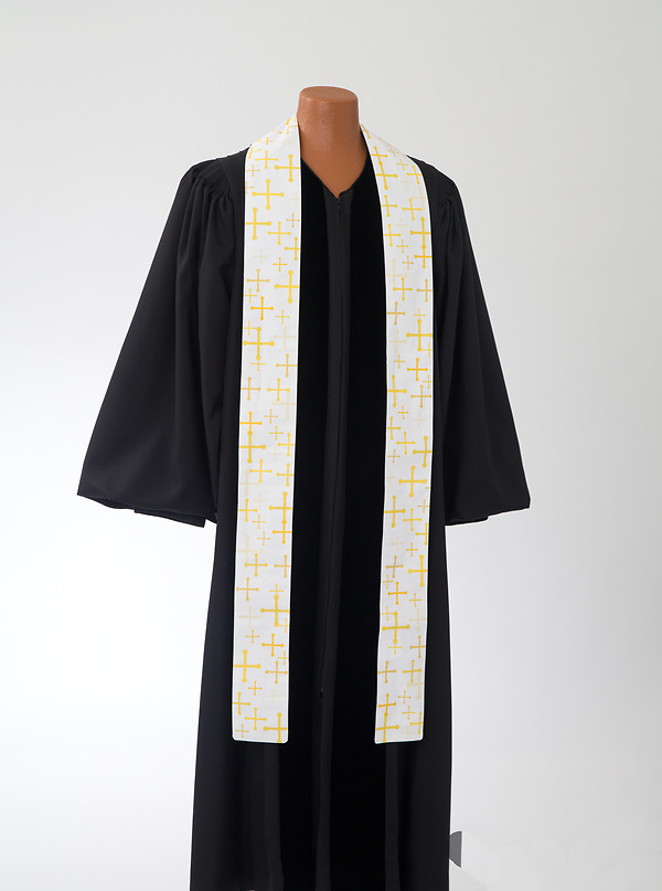 Cokesbury along with Jeff Wunrow Designs have teamed up to introduce a special edition of Jeff's Orange Label Stole line. All cotton stole featuring a print that uses a repeat of yellow gold St. Michael's crosses to create a unique textile.