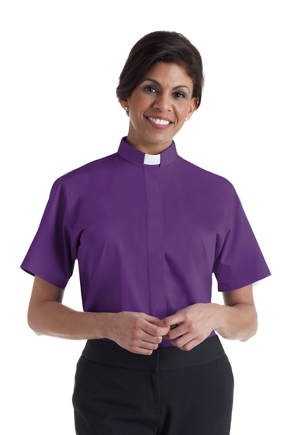 Murphy Women's Short Sleeve Tab Collar Clergy Blouse Church Purple - 16