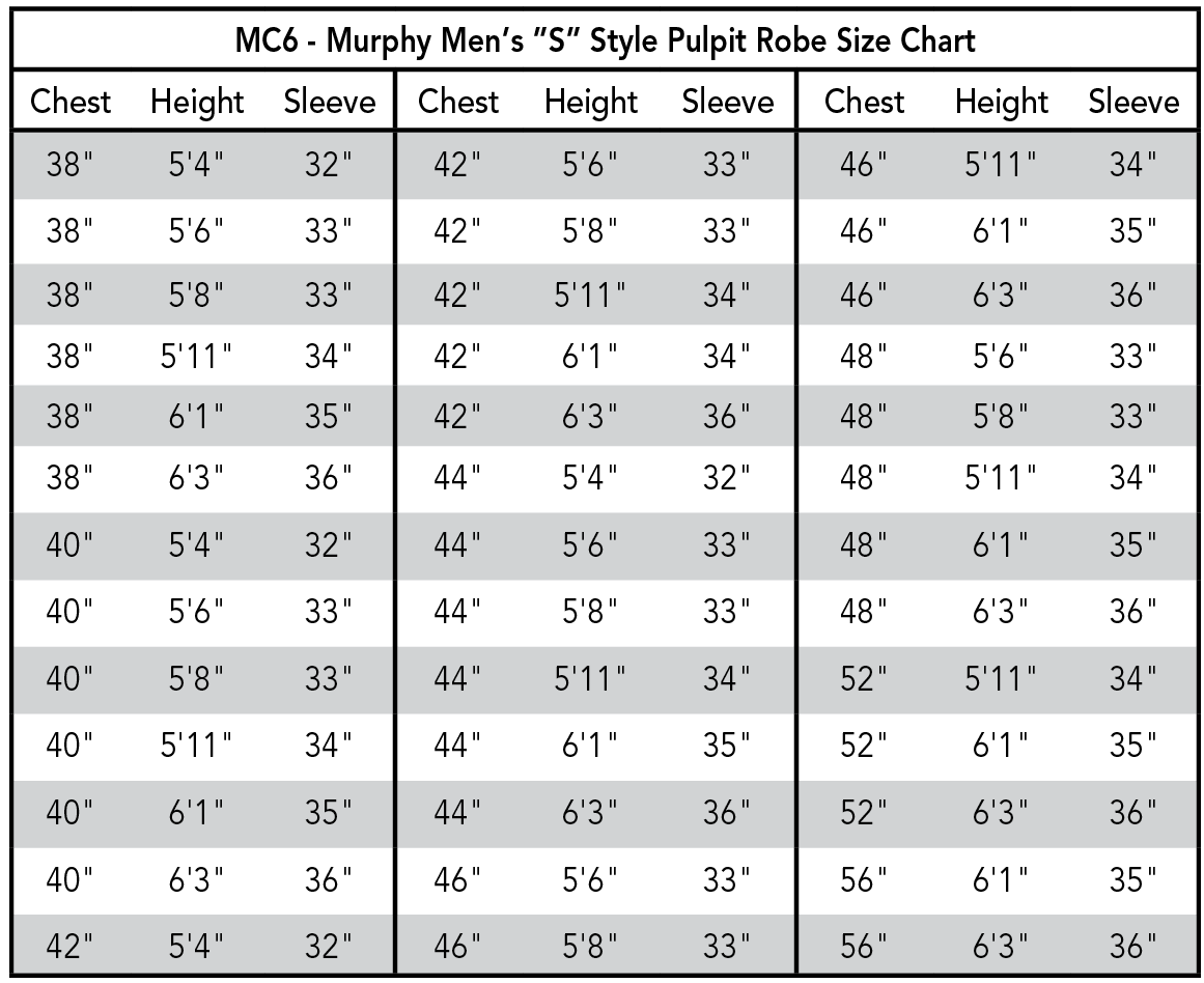 **Qwick Ship robes typically ship the following day after factory receipt of order and credit approval if applicable. Please use the chart below to determine the correct size. If you need a different size please call our custom sales department at 1-800-237-7511.