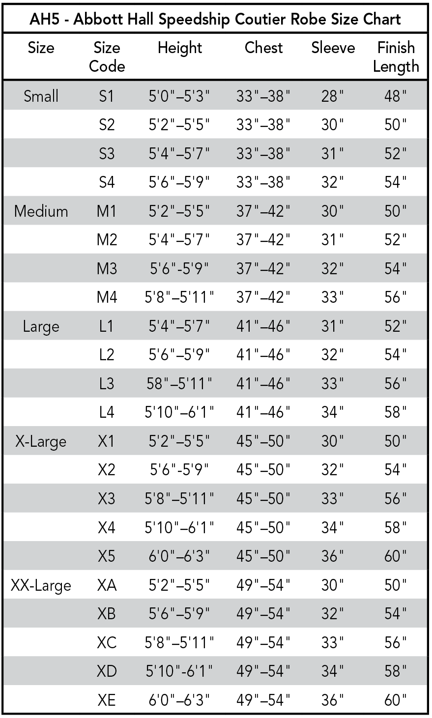 An excellent standard sized gown in the traditional Courtier style from Abbott Hall. Made of Liberty fabric with soil release finish. Features full fluting across shoulders and back with four front pleats, two center pleats and two center panels.