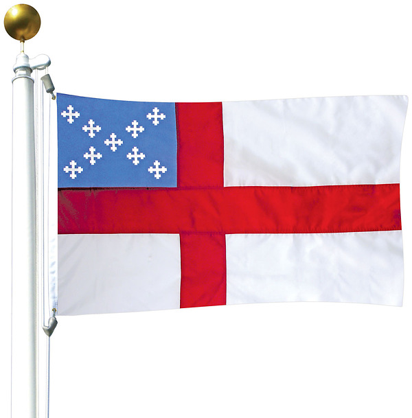 Episcopal flag made of nylon with canvas header and brass grommets. Intended for outdoor use. Made in USA. Available in the following sizes: