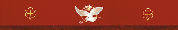 The Castle Craft Series 386 superfrontal is all embroidered (no applique) with fringe featuring a pole pocket for fastening the piece to furniture. Fabric at top of table is made of off-white linen. Made in the USA. This superfrontal can be purchased in many different fabrics and patterns. See the fabric guide on the "Content" tab to determine what material each fabric/pattern is made of. Choose the fabric/pattern from the drop down menu above to determine pricing. Comes in standard size - 84" width (left to right) x 30" depth (top front to back) x 12" drop (area hanging in front). May be ordered in custom sizes. Please call our custom sales team at 1-800-237-7511 for additional help. **This piece is custom made and is therefore non-returnable. Please allow up to eight weeks for delivery**