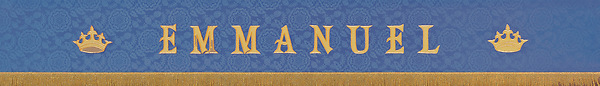 The T70 Emmanuel superfrontal is an applique with satin-stitch embroidery featuring a pole pocket for fastening the piece to furniture. Fabric at top of table is made of poplin. Made in the USA. This superfrontal can be purchased in many different fabrics and patterns. See the fabric guide on the "Content" tab to determine what material each fabric/pattern is made of. Choose the fabric/pattern from the drop down menu above to determine pricing. Comes in standard size - 84" width (left to right) x 30" depth (top front to back) x 12" drop (area hanging in front). May be ordered in custom sizes. Please call our custom sales team at 1-800-237-7511 for additional help. **This piece is custom made and is therefore non-returnable. Please allow up to eight weeks for delivery**
