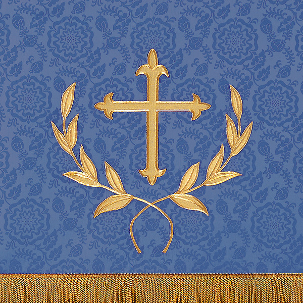 The T70 Emmanuel pulpit scarf is an applique with satin-stitch embroidery featuring a pole pocket for fastening the piece to furniture. Fabric at top of table will be of the same fabric as the drop portion with the exception of Agnus Dei, Davinci Brocade, Normandy Brocade, Tudor Rose and Premium Normandy Brocade. The standard table top fabric for these is made of white linen. Made in the USA This pulpit scarf can be purchased in many different fabrics and patterns. See the fabric guide on the "Content" tab to determine what material each fabric/pattern is made of. Choose the fabric/pattern from the drop down menu above to determine pricing. Comes in standard size - 20" width (left to right) x 20" depth (top front to back) x 20" drop (area hanging in front). May be ordered in custom sizes. Please call our custom sales team at 1-800-237-7511 for additional help. **This product is custom made to order and therefore non-returnable. Please allow up to eight weeks for delivery**