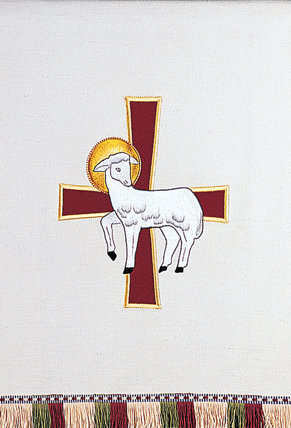 The Castle Craft Series 1172 Pulpit Scarf is primaily embroidered with some applique, couching and block fringe featuring a pole pocket for fastening the piece to furniture. Fabric at top of table will be of the same fabric as the drop portion with the exception of Angus Dei, Davinci Brocade, Ely, Normandy,Tudor Rose, Premium Angus Dei and Premium Tudor Rose. The standard table top fabric for these is made of white linen. Made in the USA This Pulpit Scarf can be purchased in many different fabrics and patterns. See the fabric guide on the "Content" tab to determine what material each fabric/pattern is made of. Choose the fabric/pattern from the drop down menu above to determine pricing. Comes in standard size - 20" width (left to right) x 20" depth (top front to back) x 20" drop (area hanging in front). May be ordered in custom sizes. Please call our custom sales team at 1-800-237-7511 for additional help. **This product is custom made to order and therefore non-returnable. Please allow up to eight weeks for delivery**