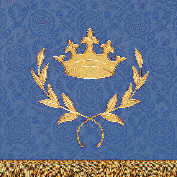 The T70 Emmanuel lectern scarf is an applique with satin-stitch embroidery featuring a pole pocket for fastening the piece to furniture.Fabric at top of table will be of the same fabric as the drop portion with the exception of Agnus Dei, Davinci Brocade, Normandy Brocade, Tudor Rose and Premium Normandy Brocade. The standard table top fabric for these is made of white linen. Made in the USA This lectern scarf can be purchased in many different fabrics and patterns. See the fabric on the "Content" tab below to determine what material each fabric/pattern is made of. Choose the fabric/pattern from the drop down menu above to determine pricing. Comes in standard size - 20" width (left to right) x 20" depth (top front to back) x 20" drop (area hanging in front). May be ordered in custom sizes. Please call our custom sales team at 1-800-237-7511 for additional help. **This product is custom made to order and therefore non-returnable. Please allow up to eight weeks for delivery**