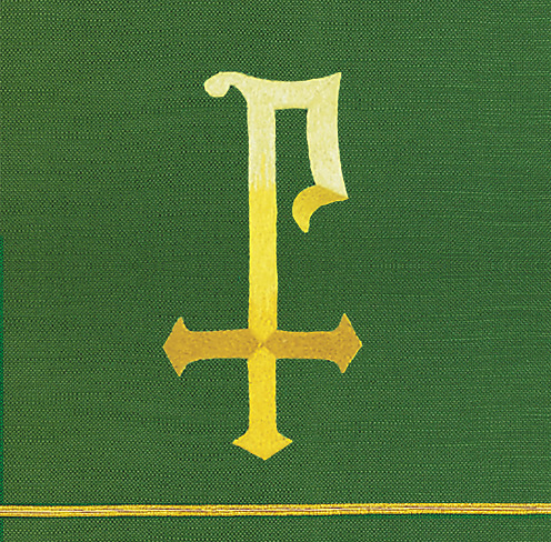The Castle Craft Series 338 pulpit scarf is all embroidered (no applique) with trim featuring a pole pocket for fastening the piece to furniture. Fabric at top of table is made of off-white linen. Made in the USA. This pulpit scarf can be purchased in many different fabrics and patterns. See the fabric guide on the "Content" tab to determine what material each fabric/pattern is made of. Choose the fabric/pattern from the drop down menu above to determine pricing. Comes in standard size - 20" width (left to right) x 20" depth (top front to back) x 20" drop (area hanging in front). May be ordered in custom sizes. Please call our custom sales team at 1-800-237-7511 for additional help. **This product is custom made to order and therefore non-returnable. Please allow up to eight weeks for delivery**
