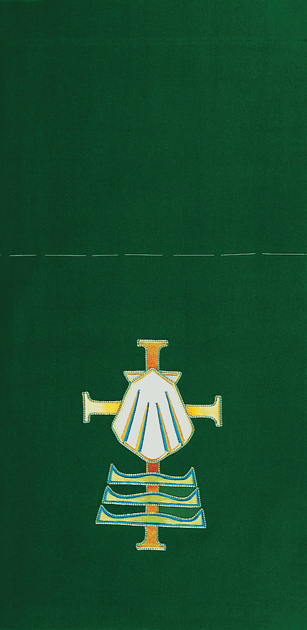 The Castle Craft Series 3333 lectern scarf is all embroidered (no applique) featuring a green fringe at the bottom and a pole pocket for fastening the piece to furniture. Fabric at top of table will be of the same fabric as the drop portion with the exception of Normandy Brocade, Tudor Rose and Premium Tudor Rose. The standard table top fabric for these is made of white linen. Made in the USA This lectern scarf can be purchased in many different fabrics and patterns. See the fabric on the "Content" tab below to determine what material each fabric/pattern is made of. Choose the fabric/pattern from the drop down menu above to determine pricing. Comes in standard size - 20" width (left to right) x 20" depth (top front to back) x 20" drop (area hanging in front). May be ordered in custom sizes. Please call our custom sales team at 1-800-237-7511 for additional help. **This product is custom made to order and therefore non-returnable. Please allow up to eight weeks for delivery**