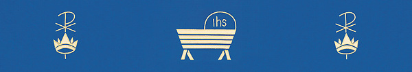 The HE20 Christ Child superfrontal is an applique with satin-stitch embroidery featuring a pole pocket for fastening the piece to furniture. Fabric at top of table is made poplin. Made in the USA. This superfrontal can be purchased in many different fabrics and patterns. See the fabric guide on the "Content" tab to determine what material each fabric/pattern is made of. Choose the fabric/pattern from the drop down menu above to determine pricing. Comes in standard size - 84" width (left to right) x 30" depth (top front to back) x 12" drop (area hanging in front). May be ordered in custom sizes. Please call our custom sales team at 1-800-237-7511 for additional help. **This piece is custom made and is therefore non-returnable. Please allow up to eight weeks for delivery**