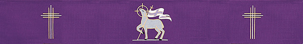 The 6007 Lamb of God superfrontal is an applique with satin-stitch embroidery featuring a pole pocket for fastening the piece to furniture. Fabric at top of table is made of off-white linen. Made in the USA. This superfrontal can be purchased in many different fabrics and patterns. See the fabric guide on the "Content" tab to determine what material each fabric/pattern is made of. Choose the fabric/pattern from the drop down menu above to determine pricing. Comes in standard size - 84" width (left to right) x 30" depth (top front to back) x 12" drop (area hanging in front). May be ordered in custom sizes. Please call our custom sales team at 1-800-237-7511 for additional help. **This piece is custom made and is therefore non-returnable. Please allow up to eight weeks for delivery**
