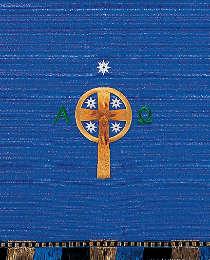 The Castle Craft Series 1168 lectern scarf is all embroidered (no applique) featuring a variegated fringe at the bottom and a pole pocket for fastening the piece to furniture. Fabric at top of table will be of the same fabric as the drop portion with the exception of Agnus Dei, Davinci Brocade, Normandy Brocade, Tudor Rose and Premium Normandy Brocade. The standard table top fabric for these is made of white linen. Made in the USA This lectern scarf can be purchased in many different fabrics and patterns. See the fabric on the "Content" tab below to determine what material each fabric/pattern is made of. Choose the fabric/pattern from the drop down menu above to determine pricing. Comes in standard size - 20" width (left to right) x 20" depth (top front to back) x 20" drop (area hanging in front). May be ordered in custom sizes. Please call our custom sales team at 1-800-237-7511 for additional help. **This product is custom made to order and therefore non-returnable. Please allow up to eight weeks for delivery**