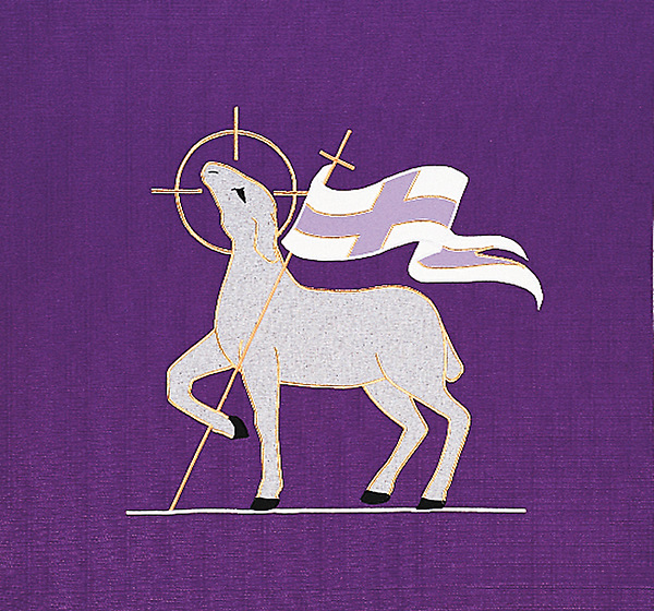 The 6007 Lamb of God Antependium is an applique with satin-stitch embroidery featuring a pole pocket for fastening the piece to furniture. Fabric at top of table will be of the same fabric as the drop portion with the exception of Agnus Dei, Davinci Brocade, Normandy Brocade, Tudor Rose and Premium Normandy Brocade. The standard table top fabric for these is made of white linen. Made in the USA This antependium can be purchased in many different fabrics and patterns. See the fabric chart on the "Content" tab below to determine what material each fabric/pattern is made of. Choose the fabric/pattern from the drop down menu above to determine pricing. Comes in standard size - 40" width (left to right) x 35" depth (top front to back) x 40" drop (area hanging in front). May be ordered in custom sizes. Please call our custom sales team at 1-800-237-7511 for additional help. **This product is custom made to order and therefore non-returnable. Please allow up to eight weeks for delivery*