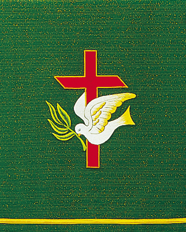 The Castle Craft Series 1175 pulpit scarf is primaily embroidered with some applique and trim featuring a pole pocket for fastening the piece to furniture. Fabric at top of table will be of the same fabric as the drop portion with the exception of Normandy Brocade, Tudor Rose and Premium Tudor Rose. The standard table top fabric for these is made of white linen. Made in the USA This pulpit scarf can be purchased in many different fabrics and patterns. See the fabric guide on the "Content" tab to determine what material each fabric/pattern is made of. Choose the fabric/pattern from the drop down menu above to determine pricing. Comes in standard size - 20" width (left to right) x 20" depth (top front to back) x 20" drop (area hanging in front). May be ordered in custom sizes. Please call our custom sales team at 1-800-237-7511 for additional help. **This product is custom made to order and therefore non-returnable. Please allow up to eight weeks for delivery**