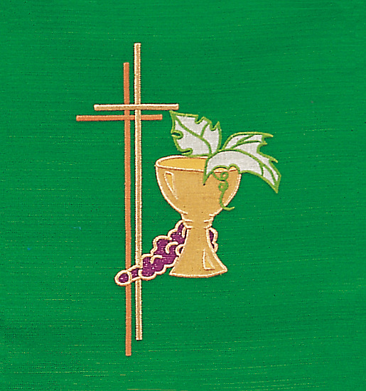 The 1916 Bread of Life pulpit scarf is an applique with satin-stitch embroidery featuring a pole pocket for fastening the piece to furniture. Fabric at top of table will be of the same fabric as the drop portion with the exception of Normandy Brocade, Tudor Rose and Premium Tudor Rose. The standard table top fabric for these is made of white linen. Made in the USA This pulpit scarf can be purchased in many different fabrics and patterns. See the fabric guide on the "Content" tab to determine what material each fabric/pattern is made of. Choose the fabric/pattern from the drop down menu above to determine pricing. Comes in standard size - 20" width (left to right) x 20" depth (top front to back) x 20" drop (area hanging in front). May be ordered in custom sizes. Please call our custom sales team at 1-800-237-7511 for additional help. **This product is custom made to order and therefore non-returnable. Please allow up to eight weeks for delivery**