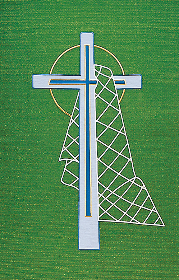 The1001 Fishers of Men Banner is an applique with satin-stitch embroidery featuring tabs at the top for fastening the piece to furniture and a pole pocket at the bottom. Made in the USA This banner can be purchased in many different fabrics and patterns. See the fabric on the "Content" tab below to determine what material each fabric/pattern is made of. Choose the fabric/pattern from the drop down menu above to determine pricing. Comes in standard size - 36" width (left to right) x 54" drop (area hanging in front). May be ordered in custom sizes. Please call our custom sales team at 1-800-237-7511 for additional help. **This product is custom made to order and therefore non-returnable. Please allow up to eight weeks for delivery**