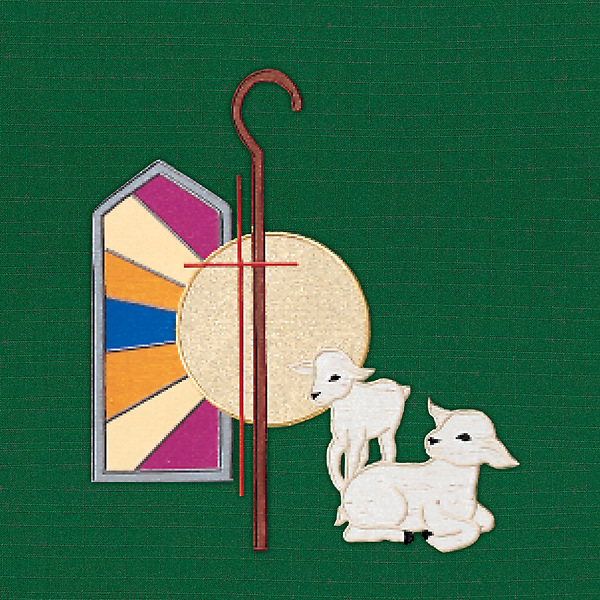 The 244 The Good Shepard lectern scarf is an applique with satin-stitch embroidery featuring a pole pocket for fastening the piece to furniture. Fabric at top of table will be of the same fabric as the drop portion with the exception of Normandy Brocade, Tudor Rose and Premium Tudor Rose. The standard table top fabric for these is made of white linen. Made in the USA. This lectern scarf can be purchased in many different fabrics and patterns. See the fabric on the "Content" tab below to determine what material each fabric/pattern is made of. Choose the fabric/pattern from the drop down menu above to determine pricing. Comes in standard size - 20" width (left to right) x 20" depth (top front to back) x 20" drop (area hanging in front). May be ordered in custom sizes. Please call our custom sales team at 1-800-237-7511 for additional help. **This product is custom made to order and therefore non-returnable. Please allow up to eight weeks for delivery**