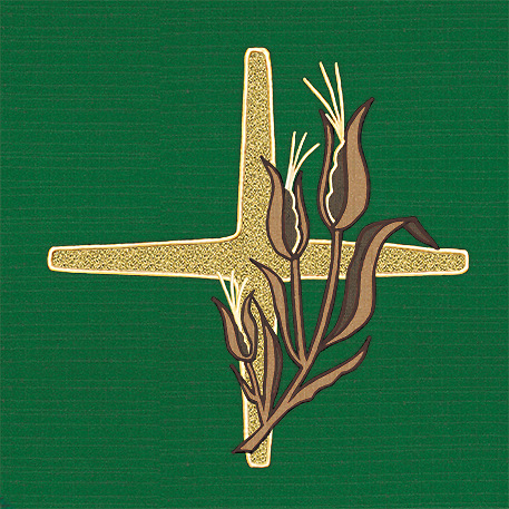 Gaspard 1443 Fruits of Creation Cross/Wheat Altar Frontlet is an applique with satin-stitch embroidery featuring a pole pocket for fastening the piece to furniture. Fabric at top of table will be of the same fabric as the drop portion with the exception of Normandy Brocade, Tudor Rose and Premium Tudor Rose. The standard table top fabric for these is made of white linen. Made in the USA This Altar Frontlets can be purchased in many different fabrics and patterns. See the fabric chart on the "Content" tab below to determine what material each fabric/pattern is made of. Choose the fabric/pattern from the drop down menu above to determine pricing. Comes in standard size - 20" width (left to right) x 30" depth (top front to back) x 22" drop (area hanging in front). May be ordered in custom sizes. Please call our custom sales team at 1-800-237-7511 for additional help. **This product is custom made to order and therefore non-returnable. Please allow up to eight weeks for delivery**